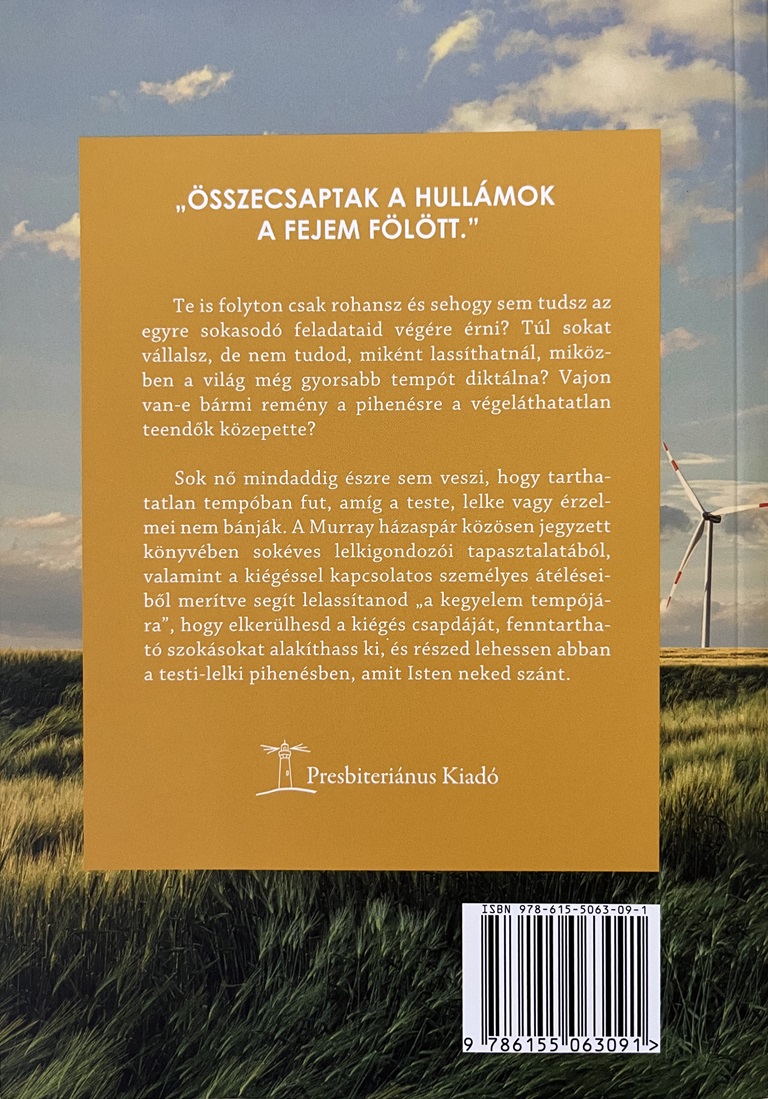 Sok nő mindaddig észre sem veszi, hogy tarthatatlan tempóban fut, amíg a teste, lelke vagy érzelmei nem bánják. A Murray házaspár közösen jegyzett könyvében sokéves lelkigondozói tapasztalatából, valamint a kiégéssel kapcsolatos személyes átéléseiből merítve segít lelassítanod „a kegyelem tempójára”, hogy elkerülhesd a kiégés csapdáját, fentartható szokásokat alakíthass ki, és részed lehessen abban a testi-lelki pihenésben, amit Isten neked szánt.